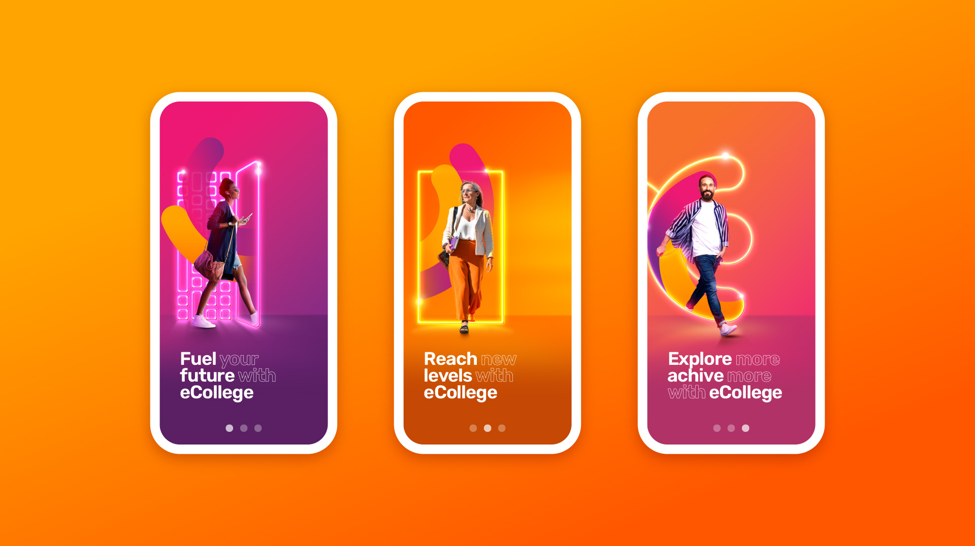 We designed a logo using simple, friendly, rounded forms to shape the ‘e’ and ‘c’, creating a visual identity that felt approachable and modern. Bright, blended colours were used to infuse a sense of energy and optimism—expressing the excitement and potential that eCollege represents. The result is a warm, welcoming identity that appeals across age groups and learning stages.